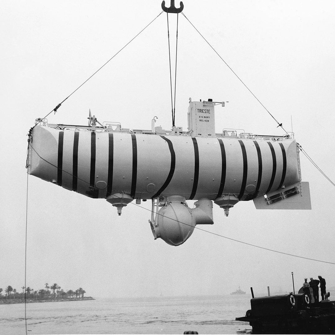 Bathyscaphe Trieste, an Italian-built deep-diving research submersible vehicle, was built to explore the deepest known part of the Earth’s oceans. Image released by the U.S. Navy Electronics Laboratory