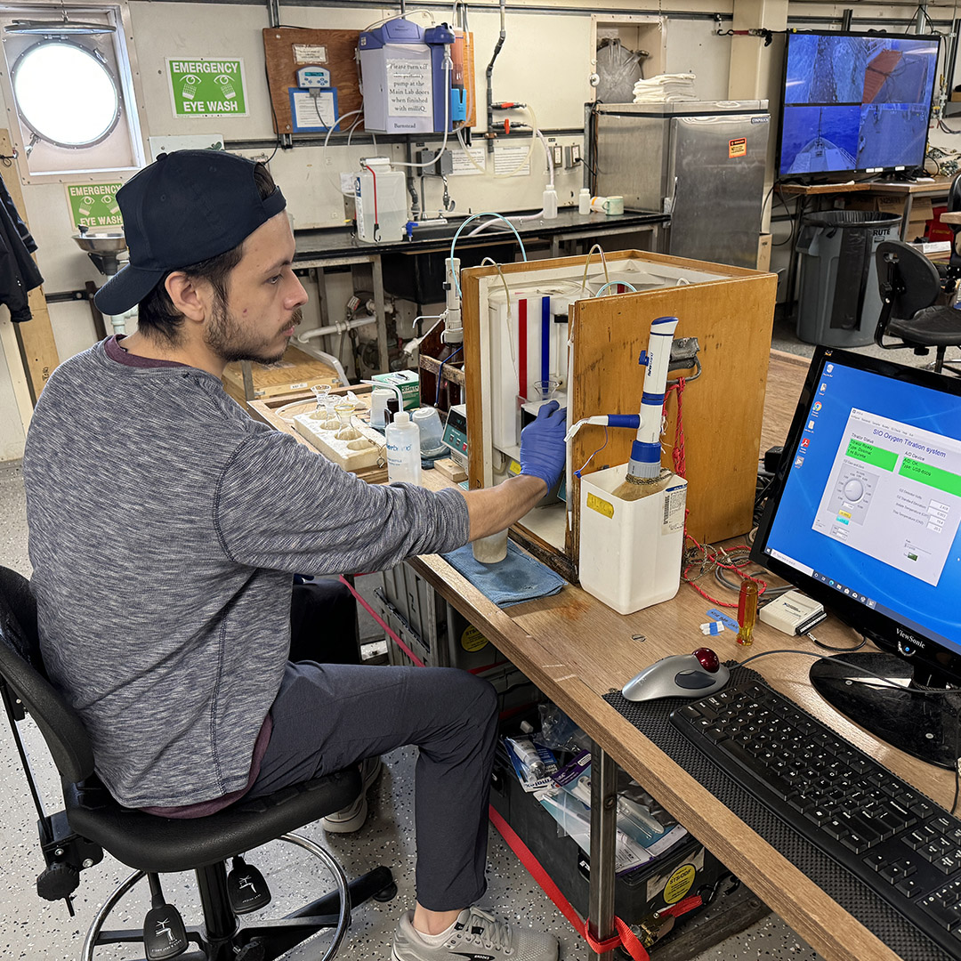 Vincent on the E/V Nautilus in 2023 (Photo by Ocean Exploration Trust).