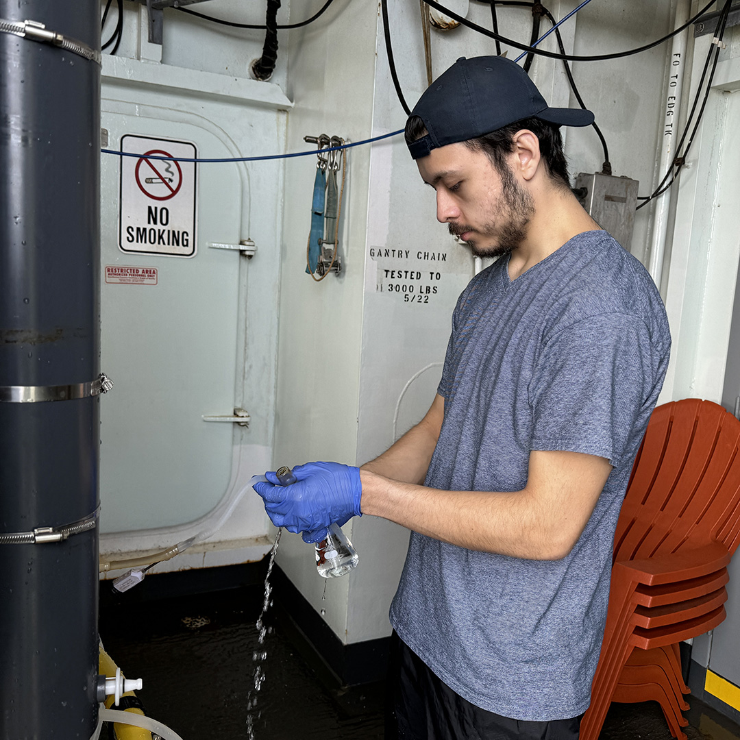 Vincent on the deck of the R/V Thompson. (Photo by J. McLaughlin).