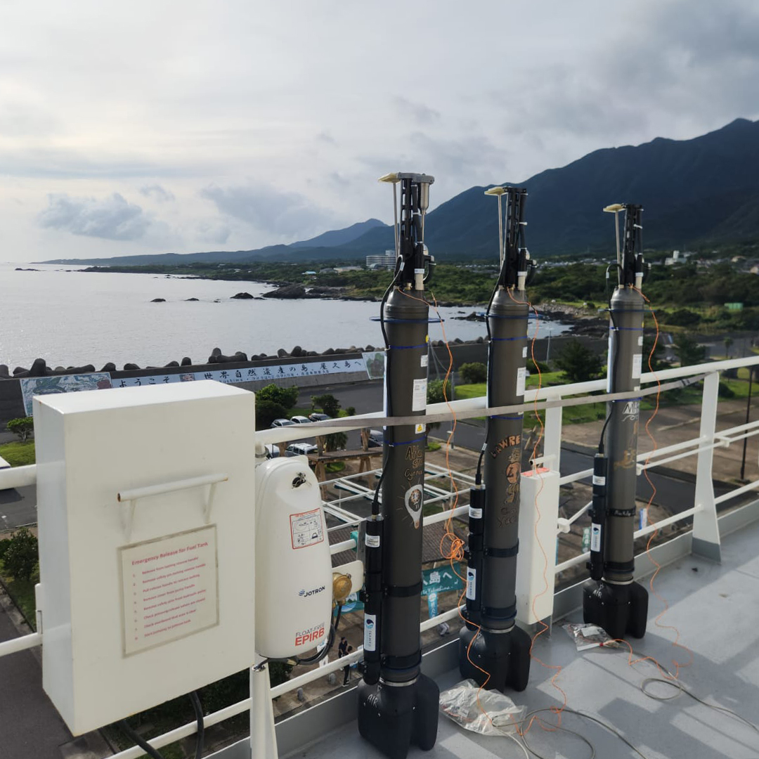 Andrew Meyer from the University of Washington joined the National Geographic Resolution in Kagoshima, Japan. Since Melissa loaded the floats on the ship in Iceland, they have traveled around Greenland, through the Northwest Passage, and then along the Aleutian Islands all while safely tucked away in the ship’s garage. Andrew got the floats all out of their crates during his six days onboard to make sure they’re ready for deployment. And it’s a good thing he did because one out of the 12 was no longer communicating properly. It will be sent home for repairs but the other 11 are ready to go! The floats got a little tour of the ship since they need to be outside with a clear view of the sky in order to get tested. Some were tested while the ship was tied up in various ports and some braved the weather while the ship was underway.