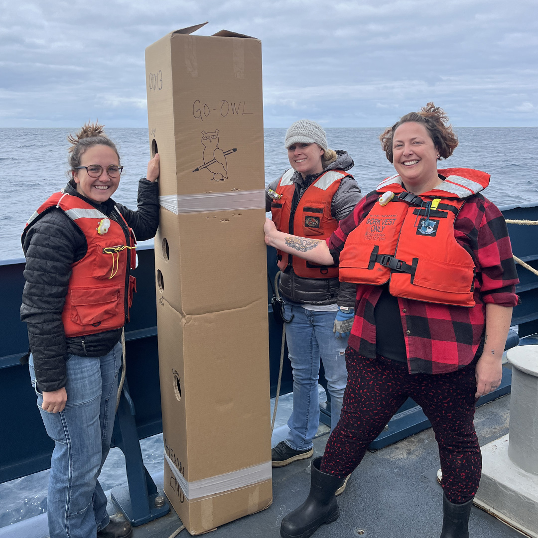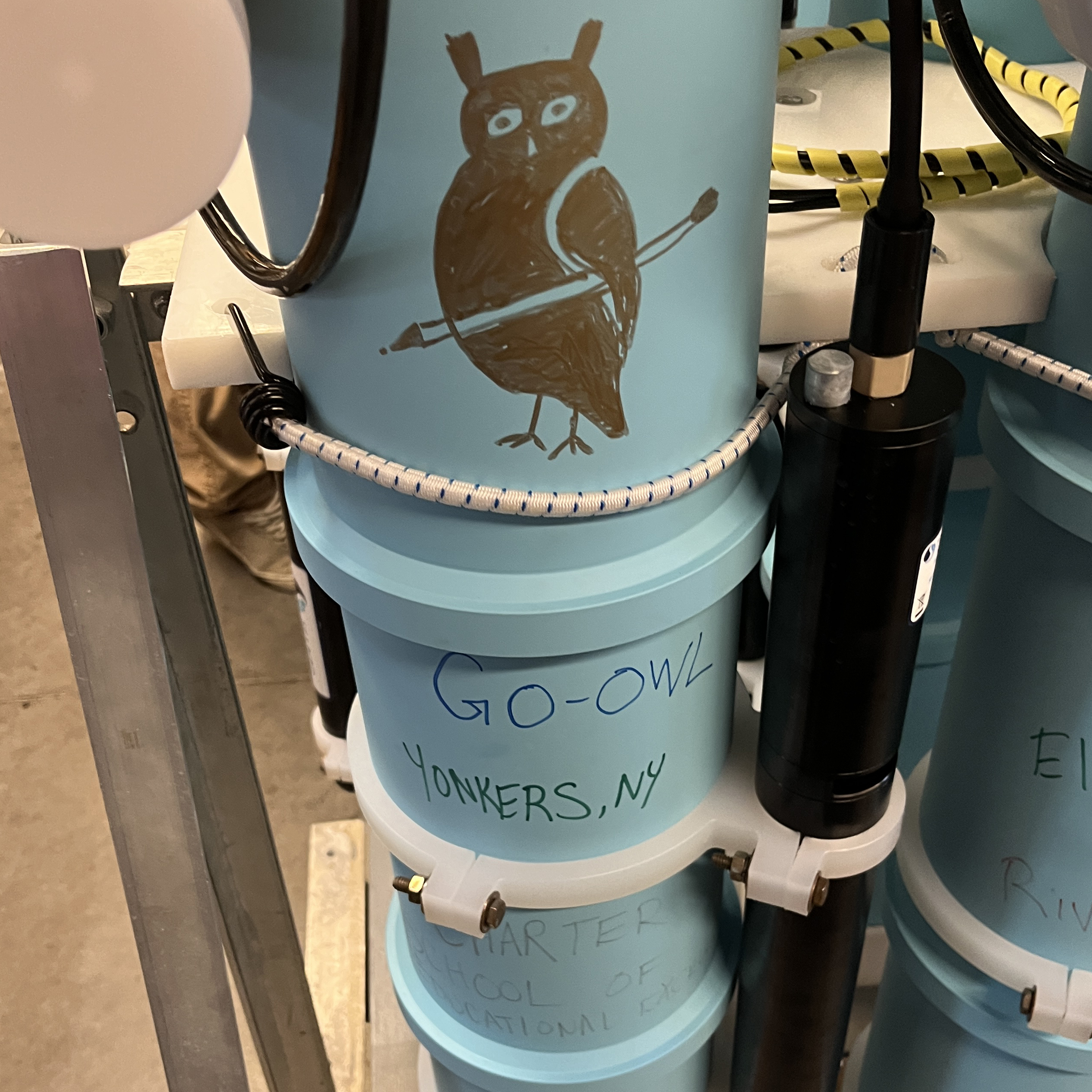 The second float has begun its journey! The SSSGs Ella and Catie oversaw a smooth deployment in less-than-smooth seas. The weather is definitely gathering as we continue our march north. But float #4013, better known as Go-Owl, splashed down just before dinner time and is off on its important mission of gathering data. I loved drawing the mascot for Charter School of Educational Excellence in Yonkers, New York. I mean, look at that wise old owl! I may not be the best artist, but it was fun to try and recreate that on the float and on the box. I made sure to get my owl tattoo in the picture just before deployment as well.