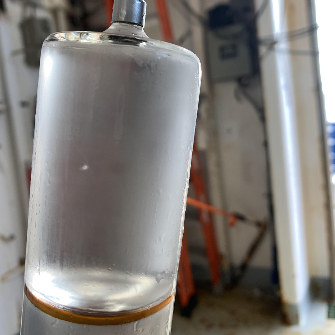 As of 0600 today, we have been at sea for exactly two weeks. Time certainly moves differently out here in the Indian Ocean. In fact, we just crossed another 15 degrees of longitude, meaning we experienced another 1-hour time zone change last night. Due to the fact that we will be crossing so many lines of longitude, therefore time zones, we use UTC (also called GMT or Zulu) times on all of our data so that we don’t get confused. As far as local time goes, we have all gotten settled in our routines by now. Personally, I am in love with my shift! I get to wake up bright and early, usually around 0430 to use the ship’s weight-lifting gym and watch the sunrise before heading to breakfast at 0730. Chef Richard cooks a delicious variation of eggs, potatoes, and other breakfast foods every morning. I then begin work at 0800. The first four hours of my shift are aligned with my PI, Mark, the middle four hours of my shift are by myself, then the last four hours of my shift are aligned with my colleague and roommate, Carol. My workday consists of analyzing water samples that Mark and Carol collected during their shifts and then it’s my turn to collect water samples from the CTD. Sampling is definitely my favorite part of the day! I always go outside a little bit early to prepare my sample syringes: if there is a single bubble in the sample, it is considered contaminated! While I am outside, I watch the research technician on duty and the CTD watchstanders recover the CTD from the water. After it is secured on deck, it is time to sample: sometimes we play music on a speaker, sometimes we don’t, but the atmosphere around the CTD is always filled with laughter and chatter. Two days ago, I had quite the pleasant surprise while I was collecting samples. I thought I saw a bubble as I drew water into my syringe, so I tried to get it out by spewing water out of the top. It wasn’t floating to the surface quite like a bubble would have, so I looked closer… and that’s when I saw the antennae! I showed the scientist beside me, and she explained that it was a large copepod. I had no idea they were visible to the naked eye! I emptied my syringe onto the deck where the water flows back to the sea and continued my sampling, but with an extra bit of excitement in the air. Carol had told me that seeing sea life is what boosts the morale of long trips such as this one: whether it’s spotting a pod of whales in the morning, catching a copepod in a sample, or watching the albatrosses flying around the waves, we certainly all feel the adventure of living and working at sea.
