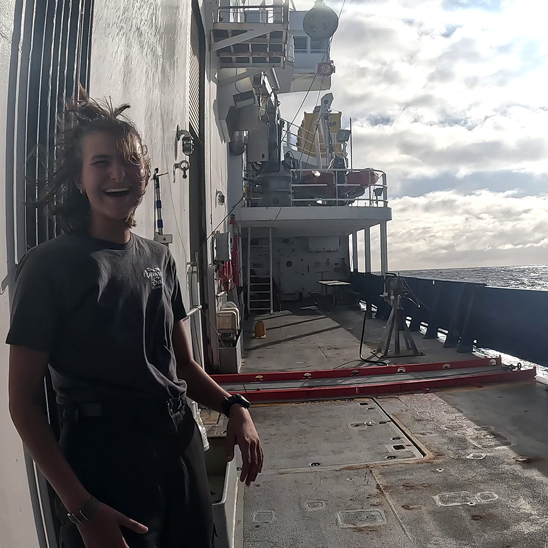 A photo of Maggie enjoying some sun before sampling from the CTD. Photo by Jom Lamoonkit