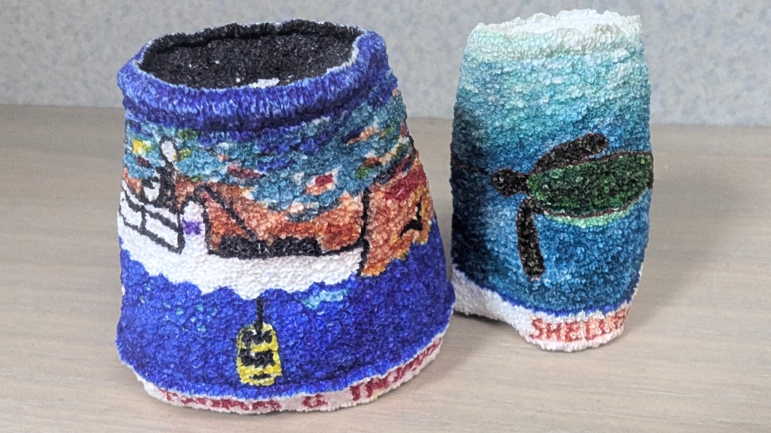 I shouldn’t have been surprised that mariners in general and Thompson mariners in particular have a lot of interesting traditions. During our deepest cast (the seafloor was 6280m, but we sent the CTD down to 6000m), we decorated styrofoam cups and attached them to the CTD in a bag. The pressure squeezes the styrofoam, and it comes back much smaller and usually a little wonky. So many people are talented artists (I, alas, am not one of those people), so the big reveal of everyone’s shrunken drawings was quite impressive. We did the same thing at our equator crossing (around 4000m), but to my chagrin, there’s no consistent difference in size. I have it on good authority that max squish occurs around 1500m, and anything beyond that is just for street cred.