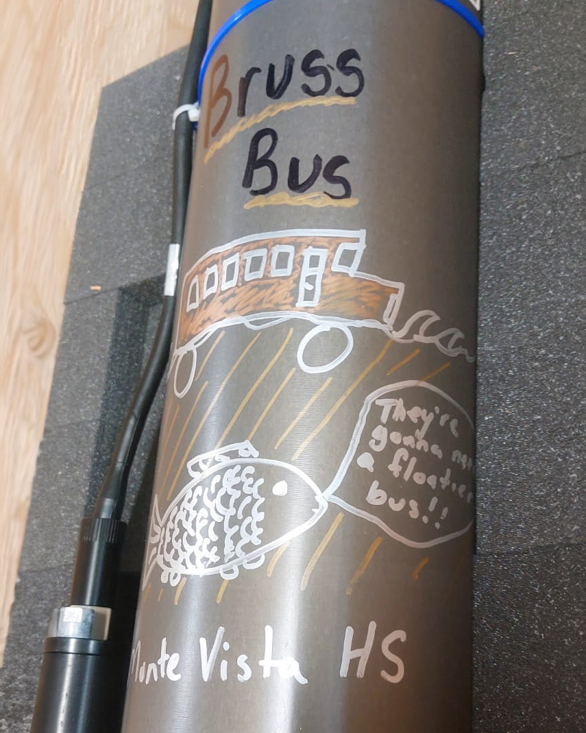 Bruss Bus was adopted by the Marine Biology class at Monte Vista High School in Danville, California. Teacher Meghan Bruss says,