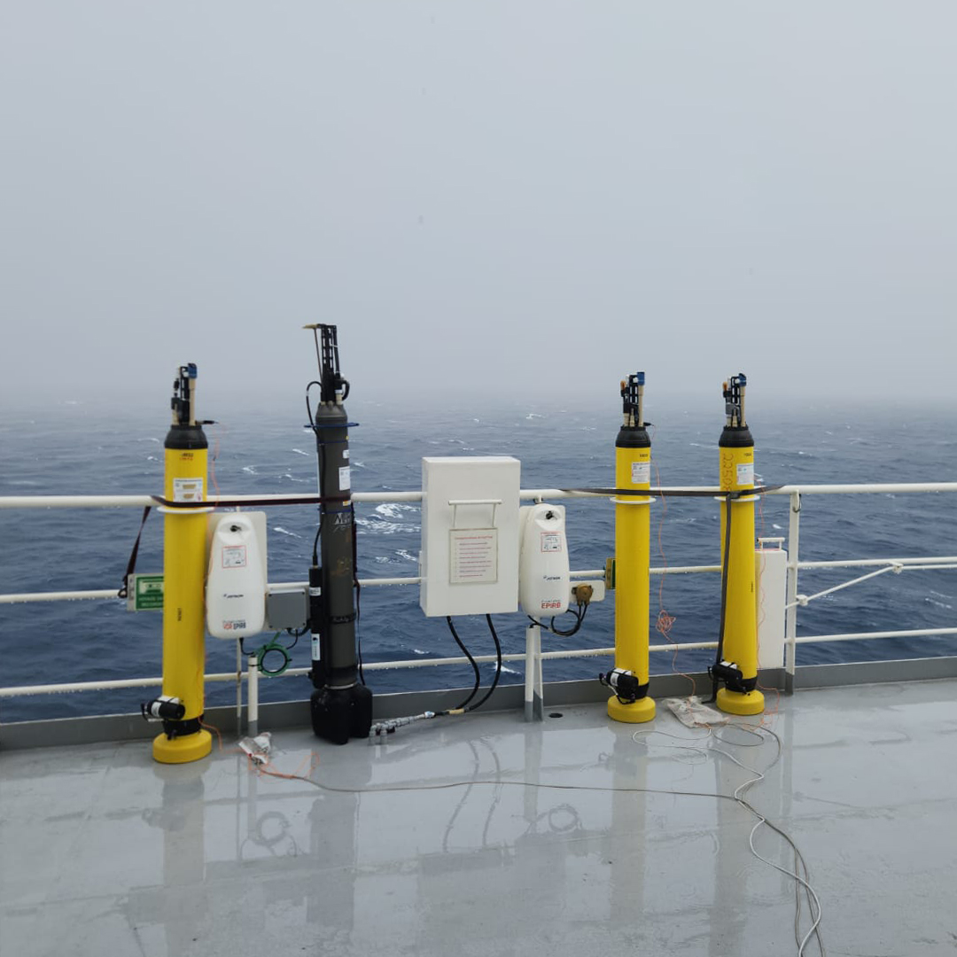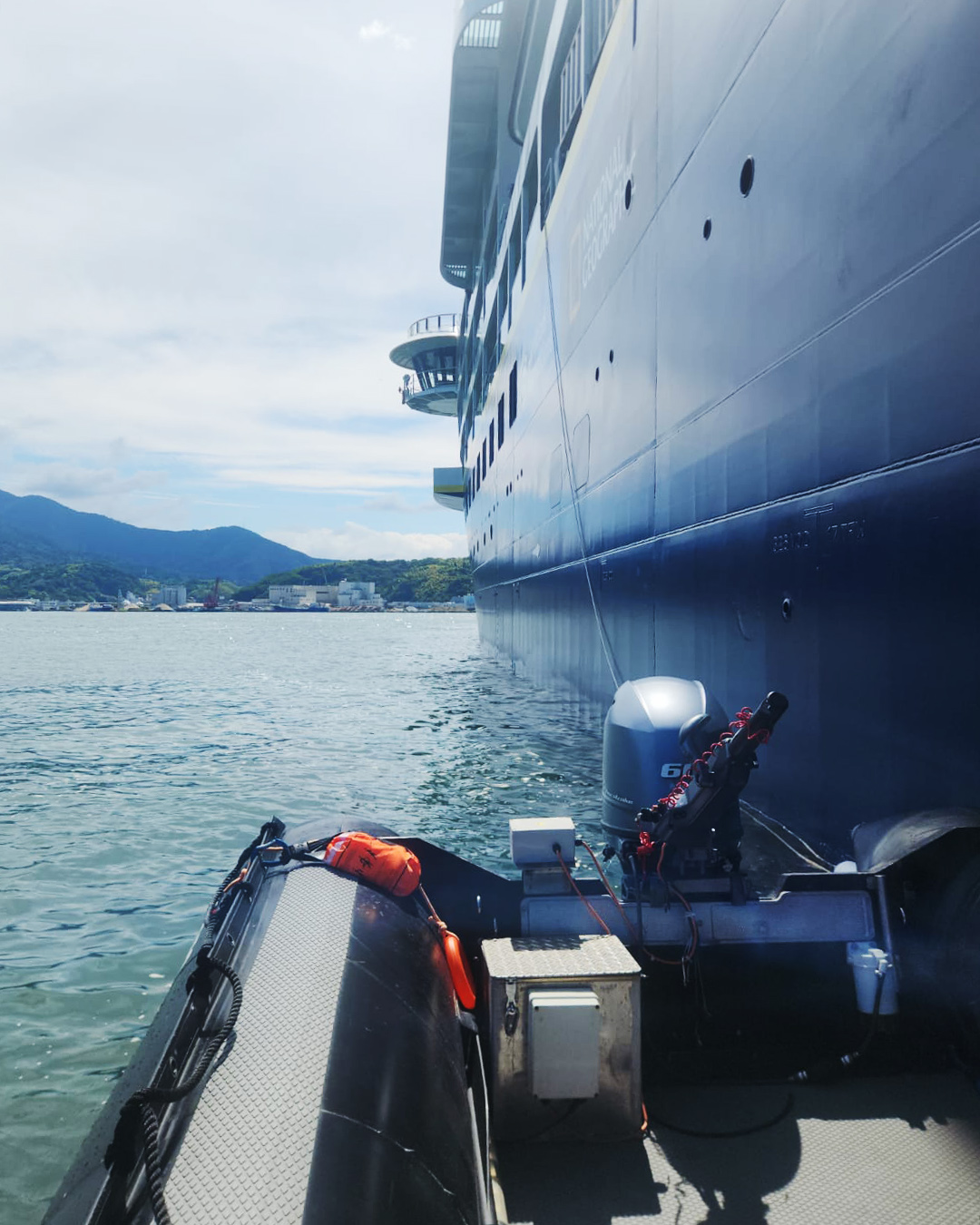 Andrew Meyer from the University of Washington joined the National Geographic Resolution in Kagoshima, Japan. Since Melissa loaded the floats on the ship in Iceland, they have traveled around Greenland, through the Northwest Passage, and then along the Aleutian Islands all while safely tucked away in the ship’s garage. Andrew got the floats all out of their crates during his six days onboard to make sure they’re ready for deployment. And it’s a good thing he did because one out of the 12 was no longer communicating properly. It will be sent home for repairs but the other 11 are ready to go! The floats got a little tour of the ship since they need to be outside with a clear view of the sky in order to get tested. Some were tested while the ship was tied up in various ports and some braved the weather while the ship was underway.