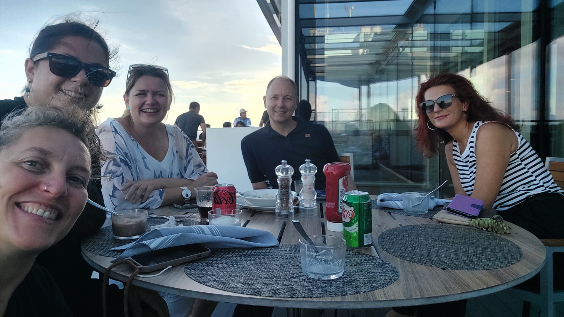 3rd anniversary dinner (from the left: Isa Rosso, Giulia Gregorio, Captain Heidi Norling, Harry Schneider and Neda Spasojevic). Photo credit Isa Rosso