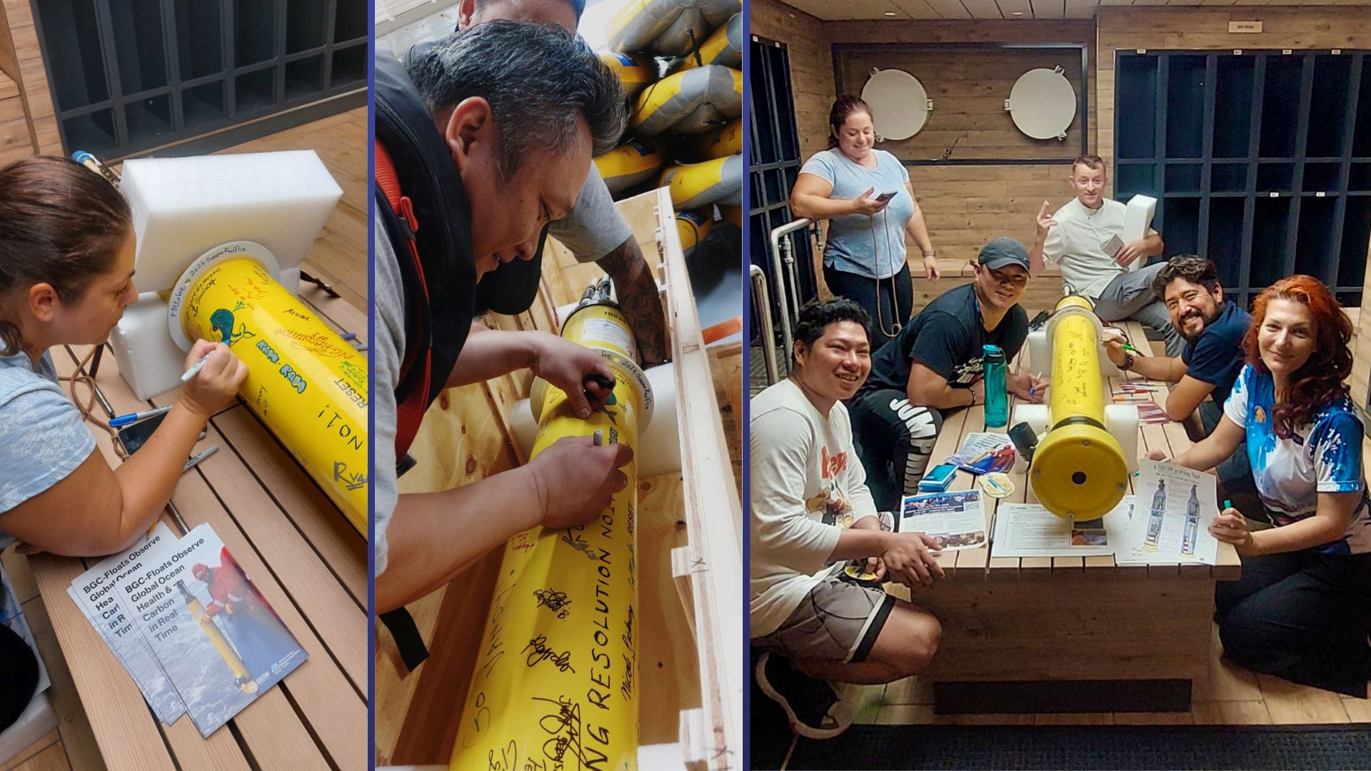 As we passed (for the first time on this voyage) the international date line, more and more excitement came from another event. The crew adopted and signed the 3rd float of the voyage: how many people can say they’ve taken a selfie with their adopted amazing yellow robot? Well, the National Geographic Resolution’s crew certainly can! Deployed at 04º 12.354’ N, 177º 25.506’ W, NG Resolution No 1 (Float-ID #22278) started its journey in the Pacific Ocean waters on October 7 at UTC 04:19 AM, under the curious eyes and cameras of the crew, like paparazzi following a diva. The sun was still strong and the day was just perfect, with gentle blue waves just barely lifting the ship. Under the watch of Captain Heidi Norling looking from the bridge, the float left the deck helped by the skilled hands of bosun Lovenio Soriano and AB Kyle Espina and was cheered by the whole crew, who felt proud to be part of such a special observation program for their beloved ocean. It was really cool to witness this moment!
