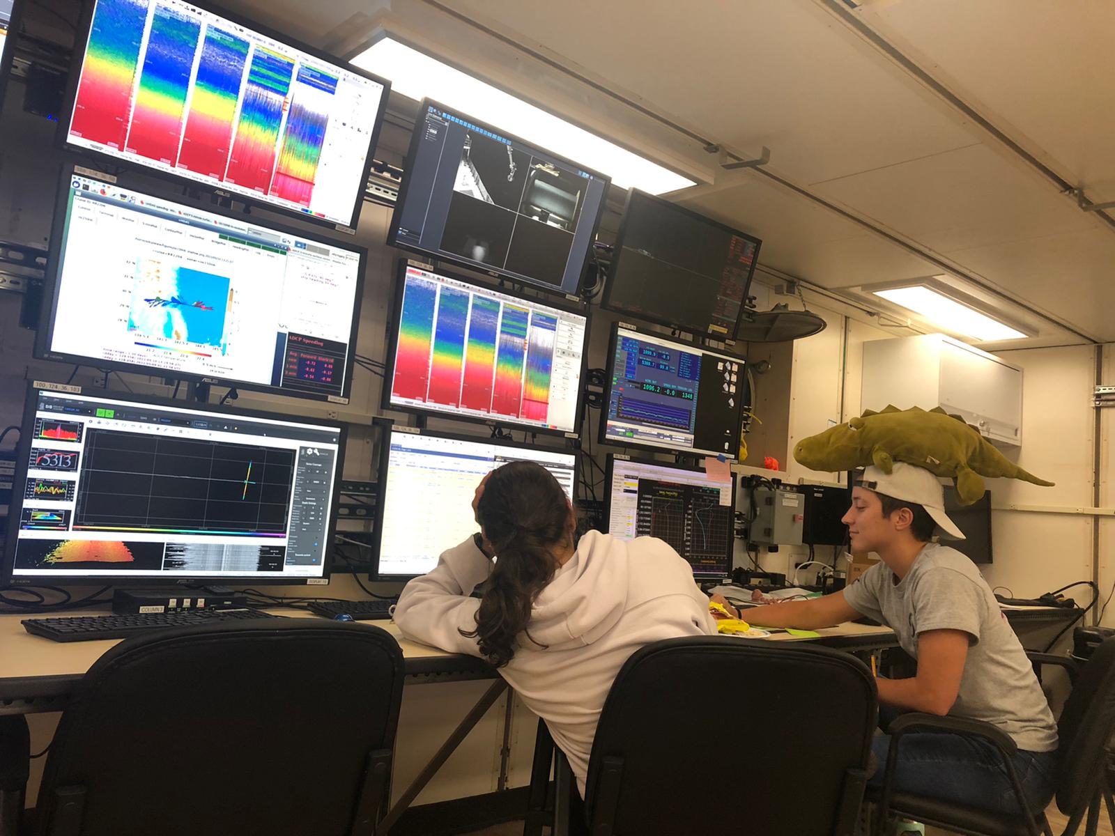 Bill looking at the various screens the CTD Team watches while the rosette is in the water. Photo by Vic Dina