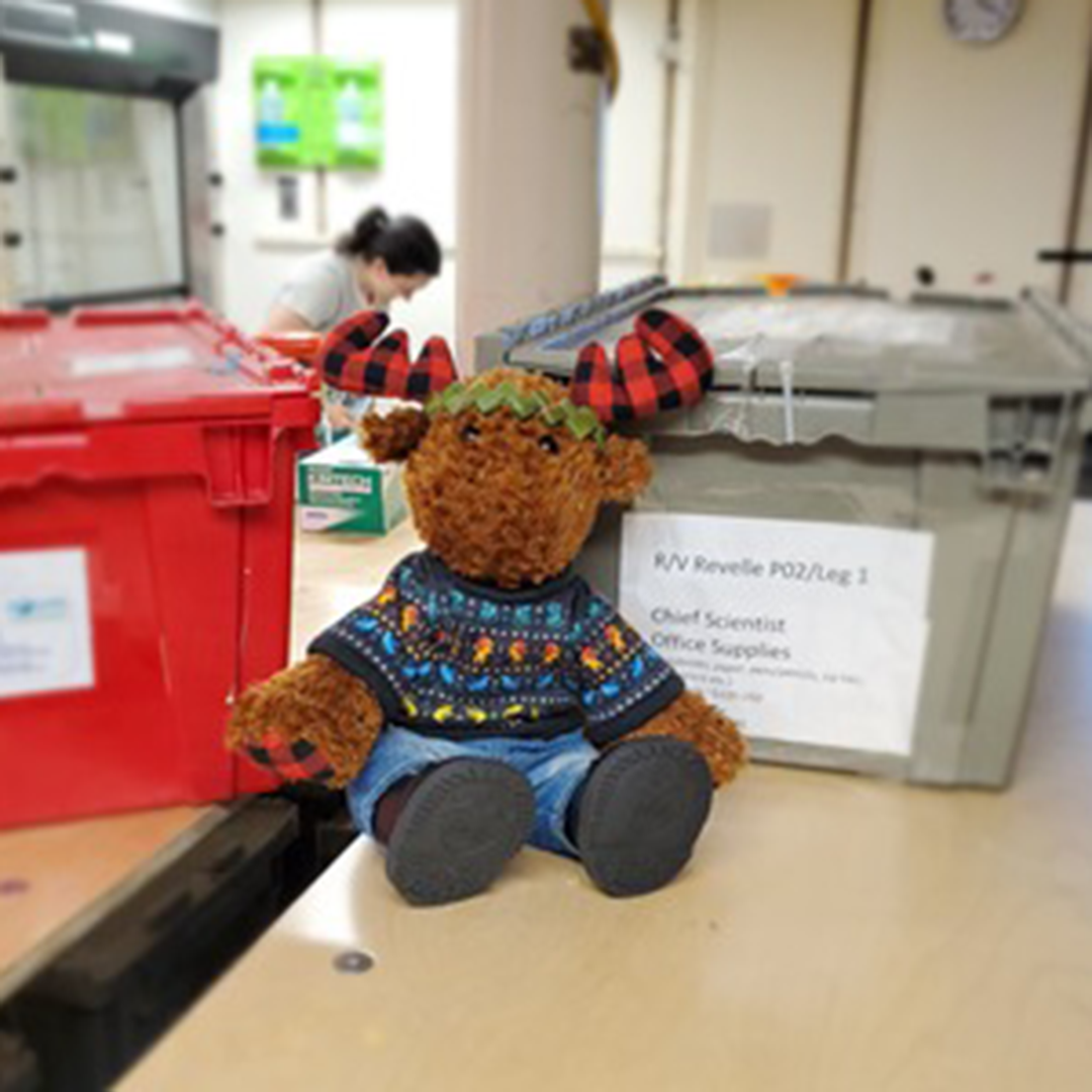 Once aboard, our scientists and their stuffed companions found and set up their respective staterooms and lab spaces, all before lunch at 11:30 a.m. It is now time to eat, rest, and get ready for the next 6 weeks at sea!