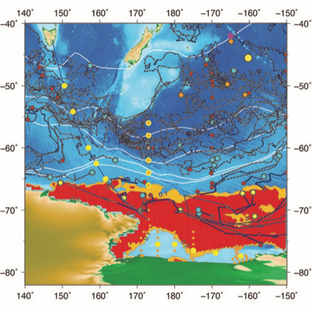 Now that we were finally on our way, the chief scientists were able to meet to determine the best way to adjust the research stations to our new course and schedule. The more westerly course offers a great opportunity for float deployment since there are few floats in this section of the ocean. There are many things to consider when deciding where to deploy a float. The image below (left) shows the original (yellow/orange dots) and proposed (solid yellow dots) deployment locations. The colored dots with black outlines and tracks indicate where SOCCOM floats were released, have traveled, and where they are currently or where they were last seen. The white lines delineate the fronts of the Antarctic Circumpolar Current (ACC) from Orsi 1995, and the monthly average ice map from January 2015 is seen in red. When planning the locations of deployment, care must be taken to avoid the Australian and New Zealand Exclusive Economic Zones (EEZs). Taking all of this into consideration and working to fit in with the research objectives of the cruise so that we can also collect water samples at as many deployment stations as possible, we have come up with a new deployment plan (seen in the map below, right). The first deployment will be done without a station, but the next 4 will coincide with sampling the ship is already planning. So now we’re finally on our way to the first station, which we will reach at 1pm local time on January 12, 2023!
