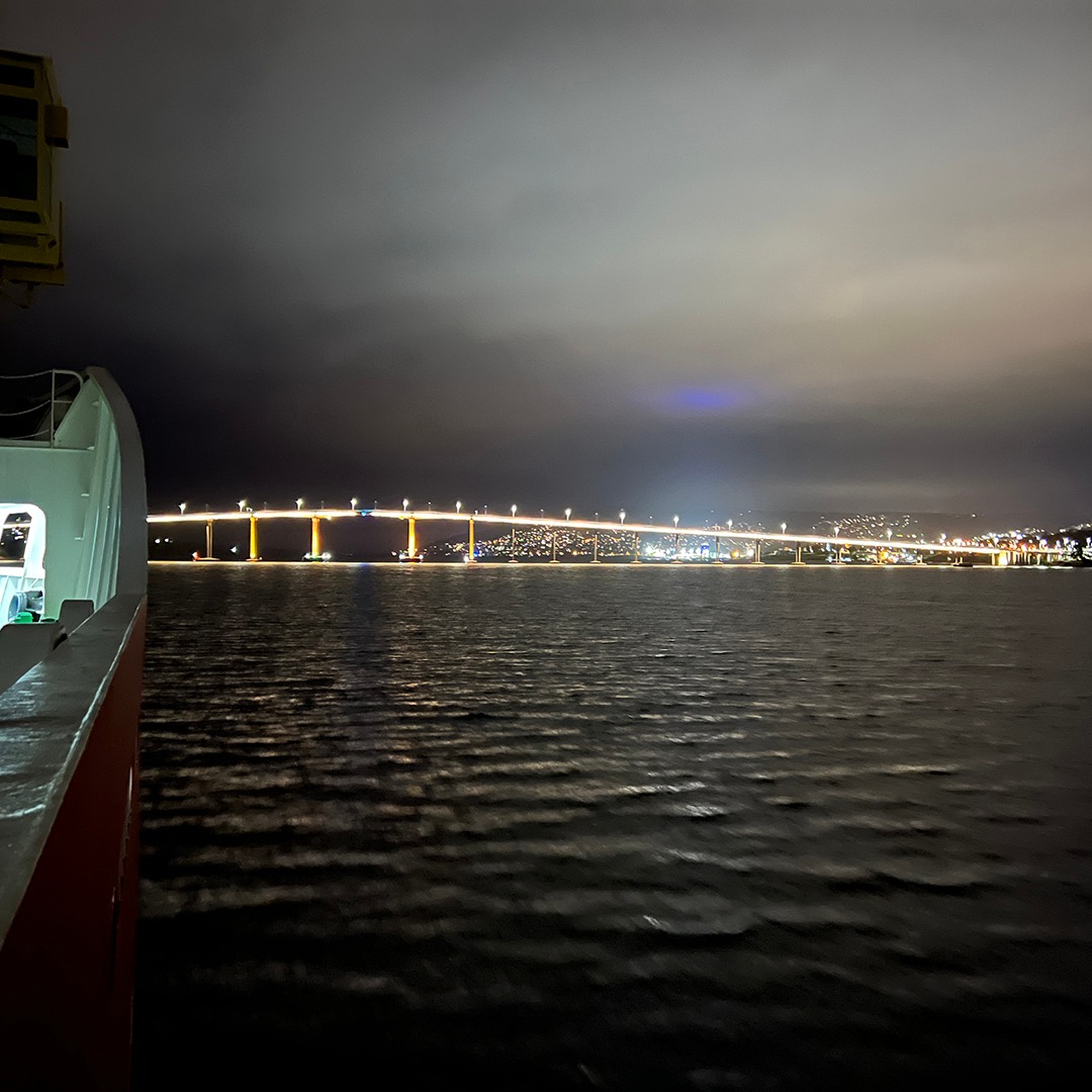 We arrived at Hobart in the early hours of January 9, 2023. The refueling process took all day (it’s a lot of fuel!), during which extra precautions and restrictions were put in place to ensure that everyone stayed safe during the procedure. We finished late in the evening and departed Hobart around 9:30 PM local time. Since I missed our departure from Lyttleton, this time I enjoyed watching the ballet of the pilot boat, tug boat, and the IBRV Araon as we made our way out of Hobart and under the Tasman Bridge. The original Tasman Bridge was struck by a ship in 1975, resulting in the deaths of 7 of the ship’s crew and 5 motorists. When the new bridge was built, it included improved safety measures, including a special laser lighthouse that indicates by colours whether the ship must be steered left or right to safely pass under the bridge. In addition, all road traffic is now stopped whenever large vessels (like the IBRV Araon) transit beneath the bridge.